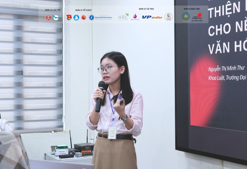 1. Tham luận: Từ khung chính sách đến không gian số: Thách thức trong quản lý phát triển các ngành công nghiệp văn hóa và sáng tạo ở Việt Nam (Nhóm tác giả: Đinh Thị Minh Hiền & Lưu Hoài Vân - Khoa Ngoại ngữ Pháp lý, Trường Đại học Luật Hà Nội);